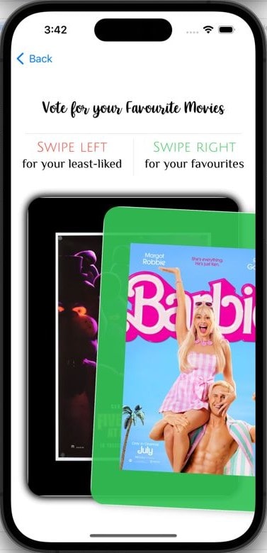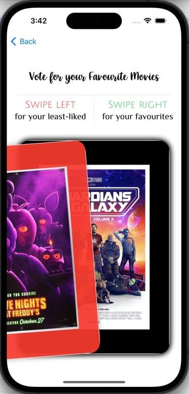After clicking the movie button on the bottom right of the invitation screen, vote for your favorite movies by swiping left or right.